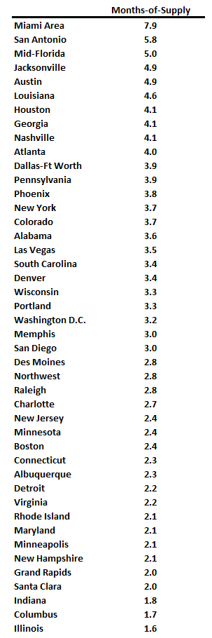 Cities with more than 6 months of supply this summer will likely see price declines. There is nothing magical about 6 months; some areas see price declines with less inventory, some more.