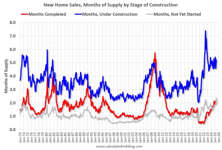 Combined, there are 1.375 million units under construction, 340 thousand below the all-time record of 1.715 million set in October 2022.