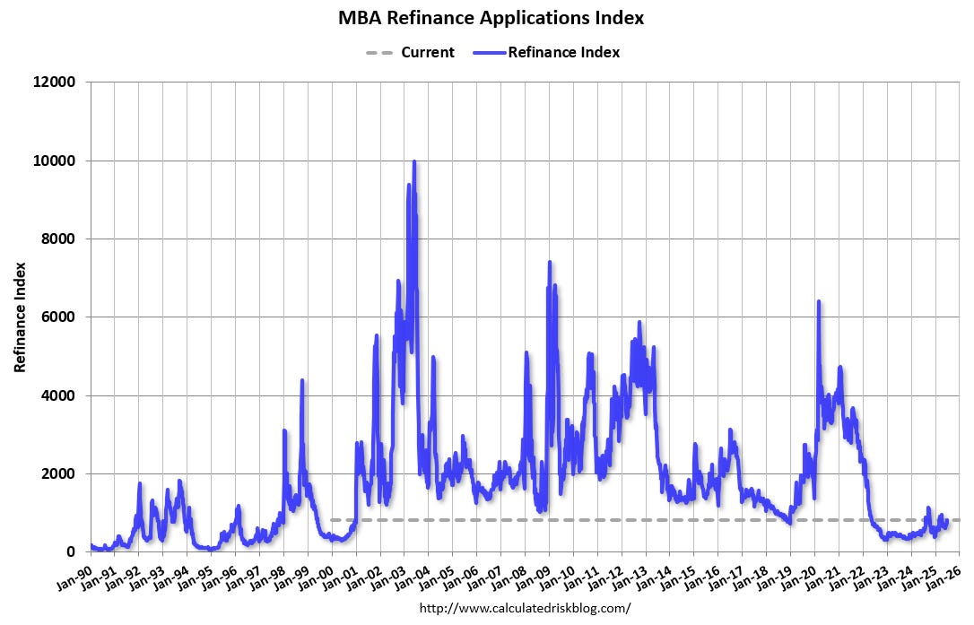 And the next graph shows the refinance index since 1990. Refinance activity is still very low.