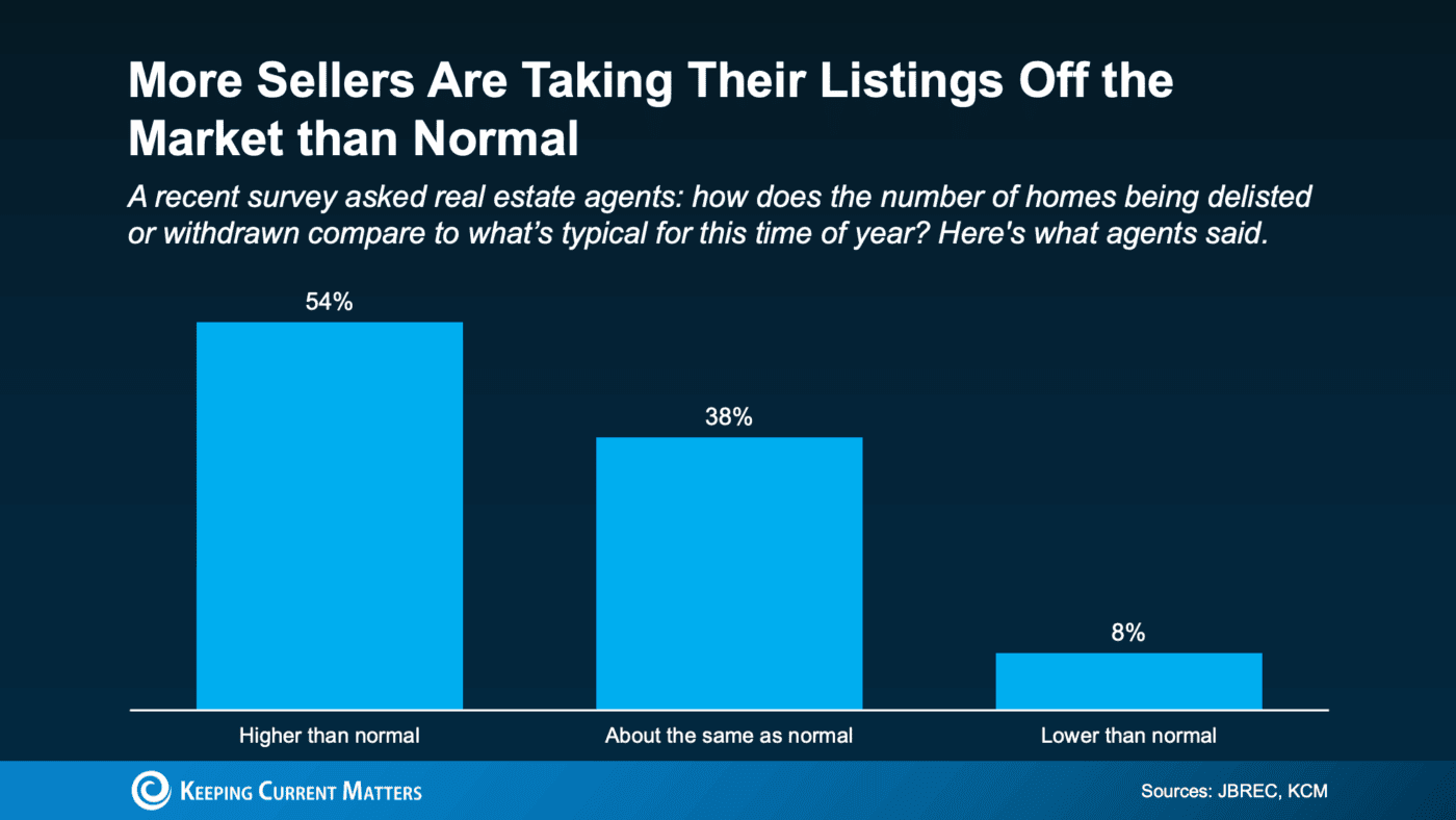 In a recent survey from John Burns Research and Consulting (JBREC) and Keeping Current Matters (KCM) over half of agents (54%) say there are more homes being taken off the market than usual.