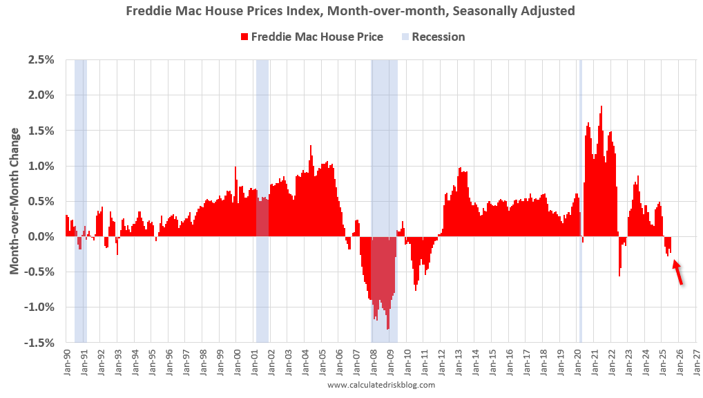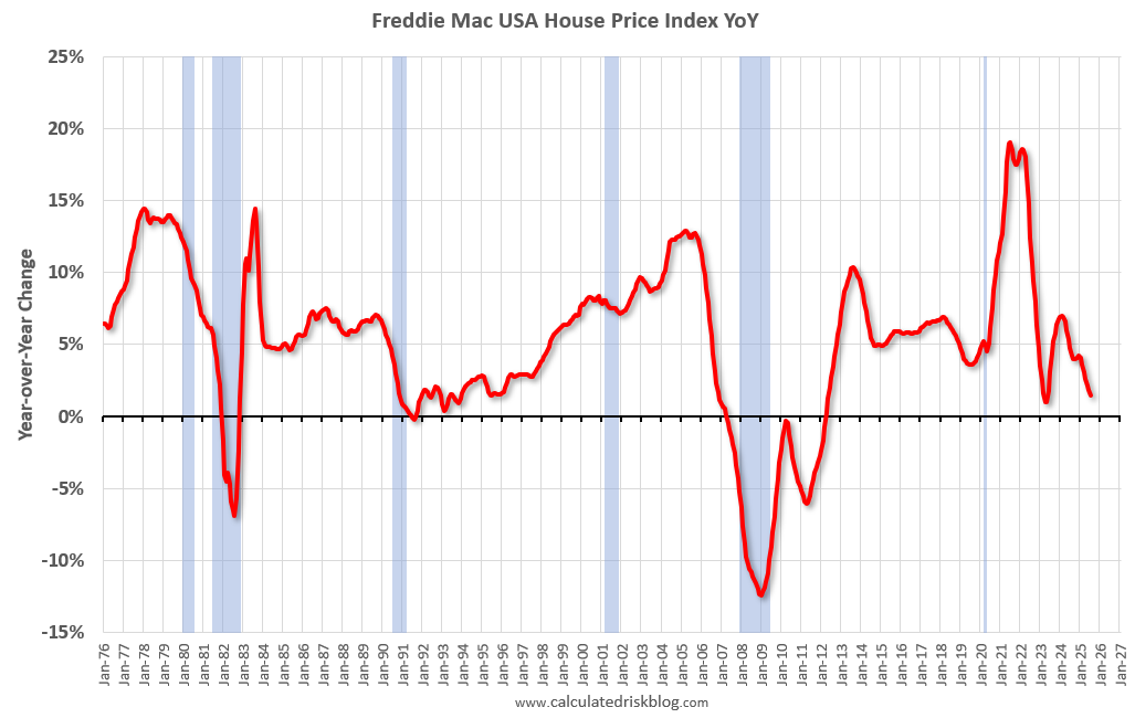 Freddie Mac House Price Index Declined in July; Up 1.4% Year-over-Year