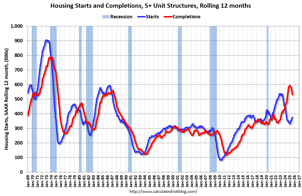 Builders responded to the sharp increase in rents in 2021 and started a large number of multi-family housing units. Then, due to pandemic related construction delays, it took longer than normal to complete these units. This new supply has kept asking rents mostly unchanged for the last couple of years.
