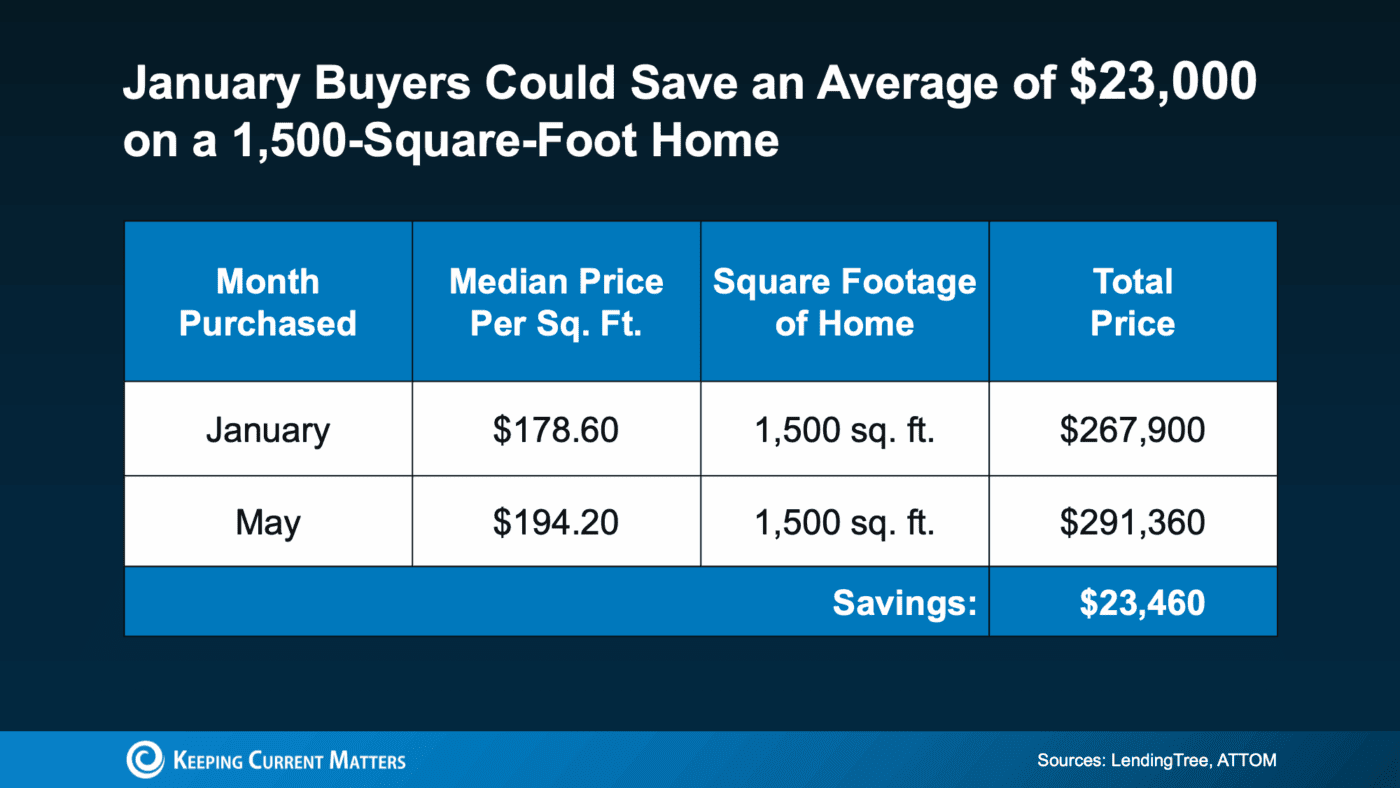 So, how much less are we talking? Here’s a look at the numbers. According to the last full year of data, for the typical 1,500 square foot house, buyers who closed on their home in January paid around $23,000 less compared to those who bought in May. And that general trend typically holds true each year (see chart below):
