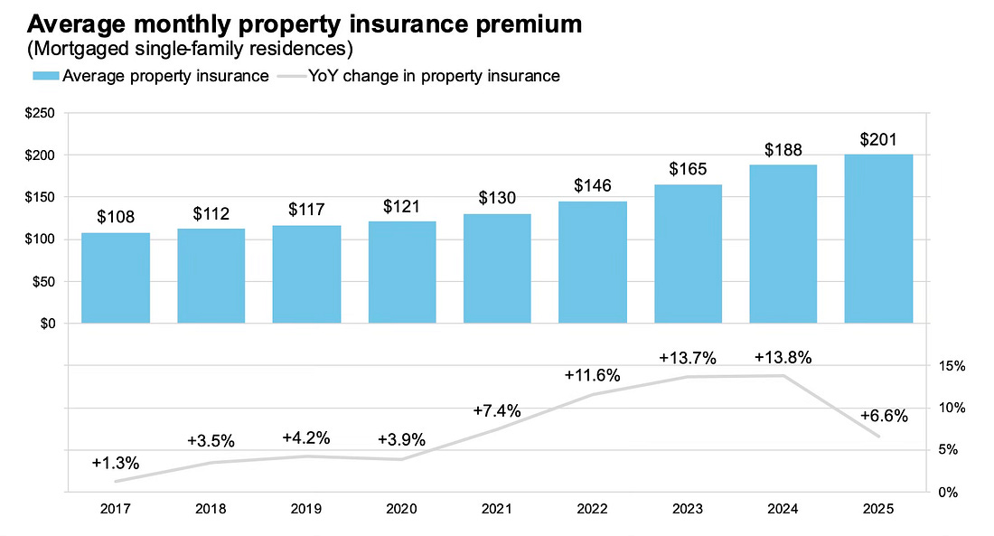 - Average annual property insurance payments rose 6.6% ($149) in 2025 to an all-time high, though this was the slowest rate of growth since 2020