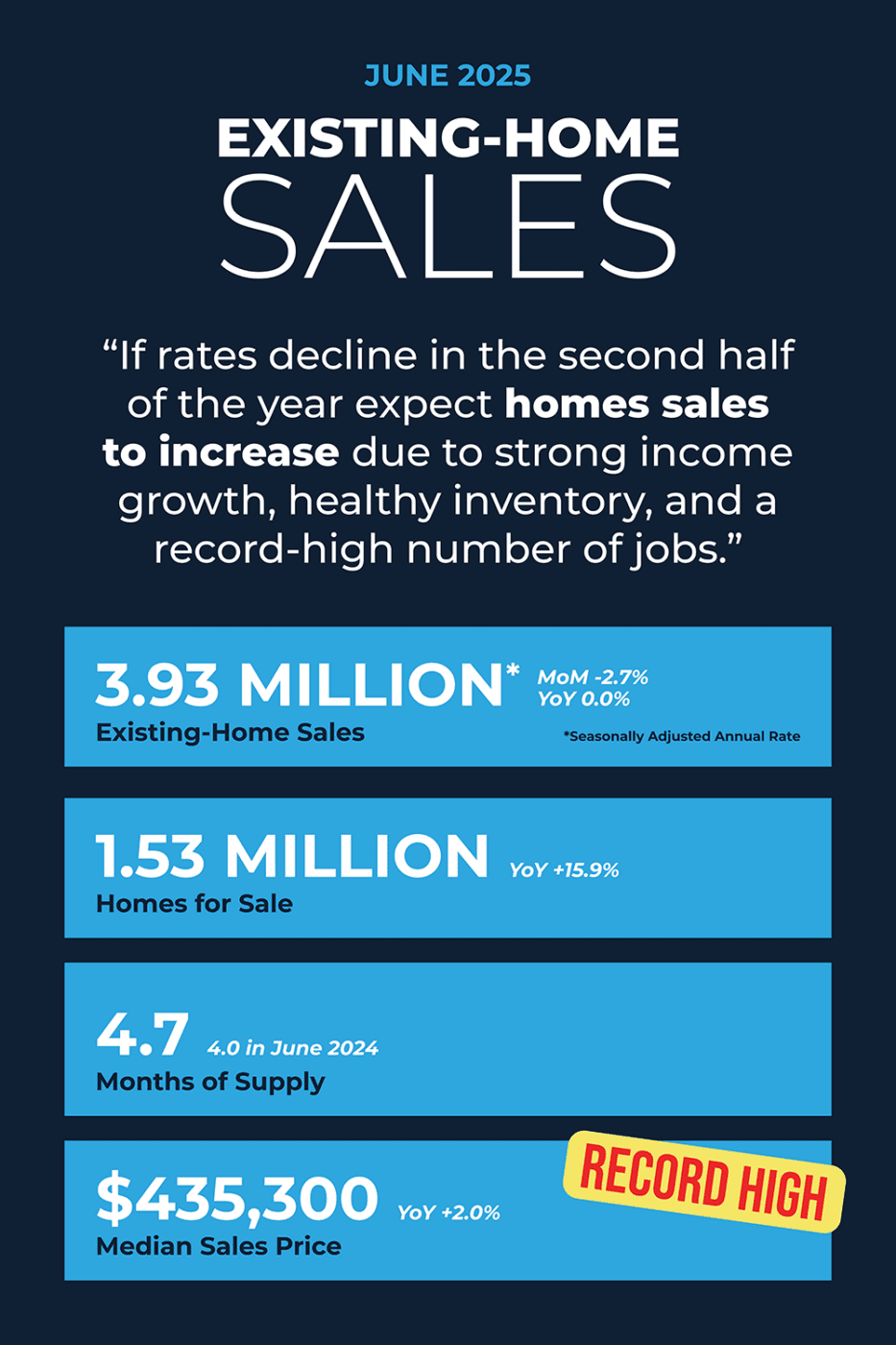- 2.7% decrease in existing-home sales — seasonally adjusted annual rate of 3.93 million in June.