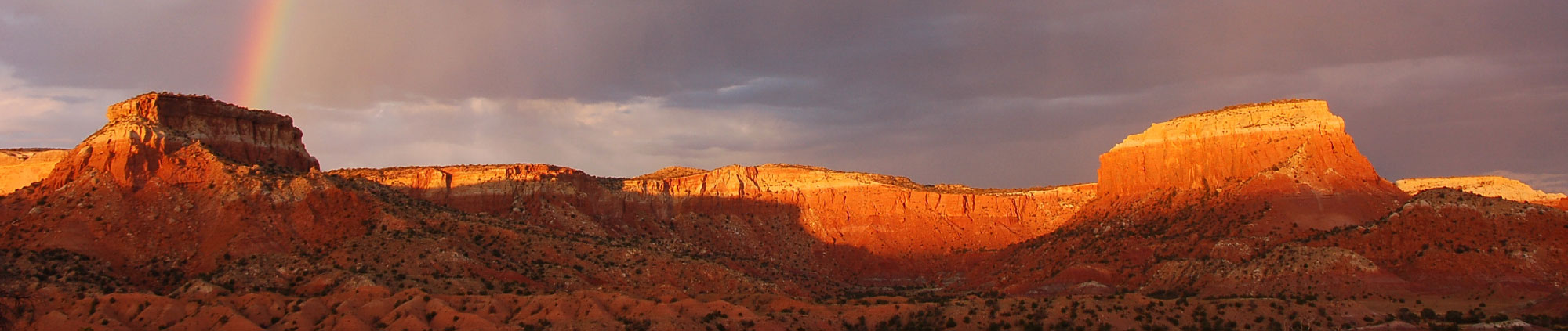 About 60 miles north of Santa Fe, Abiquiu and surrounding communities of El Rito, Gallina, Ojo Caliente and Chama to the north are some of the most beautiful landscapes New Mexico has to offer. Celebrated artist Georgia O’Keeffe lived at nearby Ghost Ranch for many years and also bought a house in Abiquiu in 1945, using it variously as an art subject, residence and studio for several years.