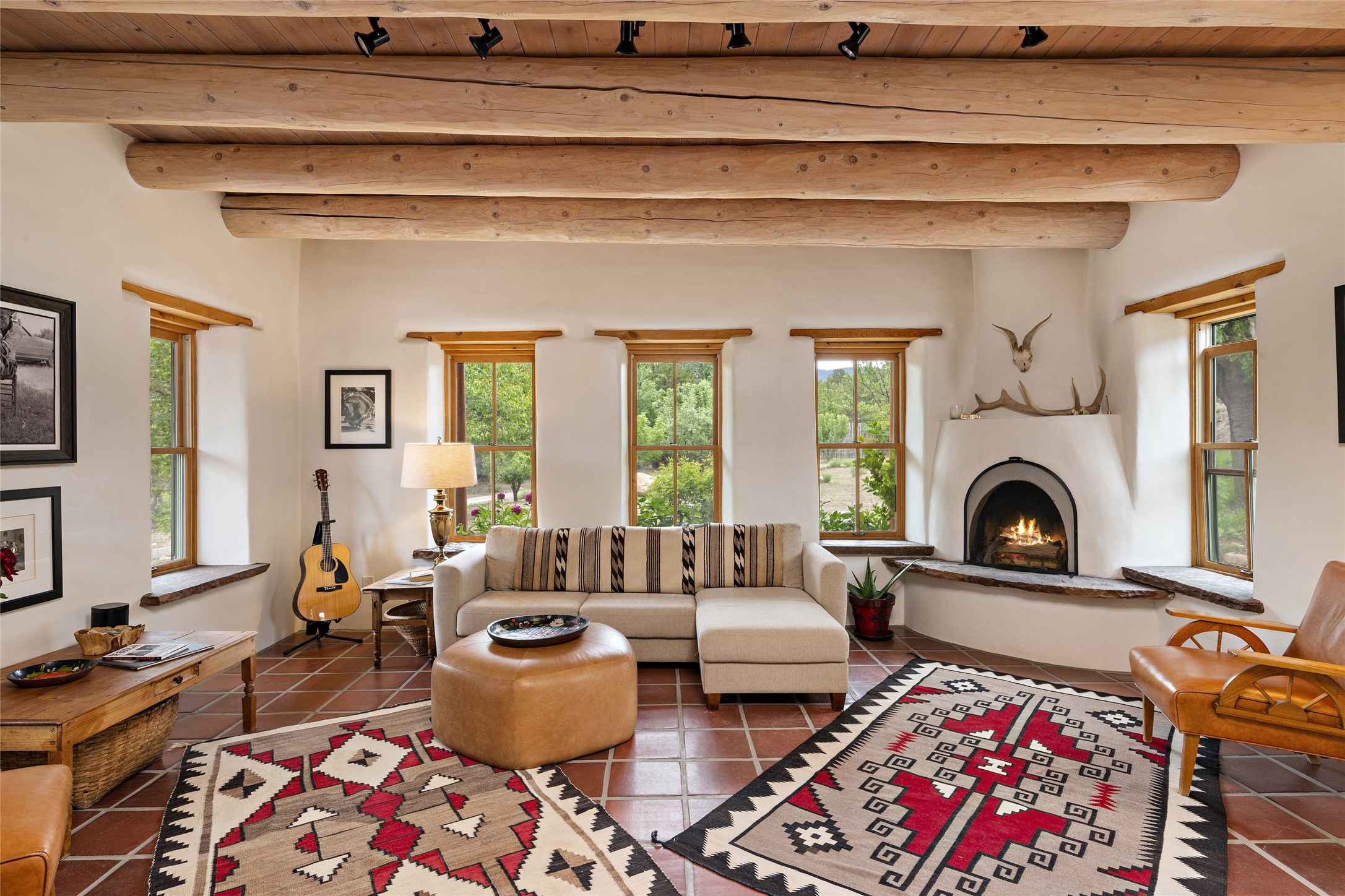 The picturesque, incorporated village of Tesuque enjoys a rural feel (there are still horse properties here) and is only five minutes north of Santa Fe, just beyond Bishop’s Lodge. Known for its valley of lush vegetation and the Tesuque River, as well as hilltop sites with views and traditional Northern New Mexico pinon and juniper, Tesuque attracts artists, professionals, retirees, second home owners, and celebrities looking to hide out. There is a small commercial community consisting of the landmark Tesuque Market, the restaurant El Nido and Shidoni Foundry.