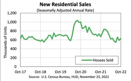 Sales of newly built homes climbed 7.5 percent between September and October to a seasonally adjusted rate of 632,000, but remained 5.8 percent below the October 2021 rate 0f 671,000, according to census data.