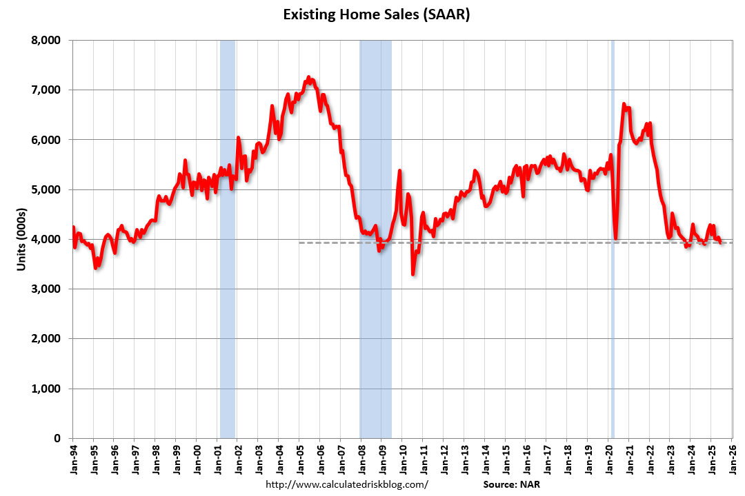 The NAR reported sales were at a “seasonally adjusted annual rate of 3.93 million in June”.