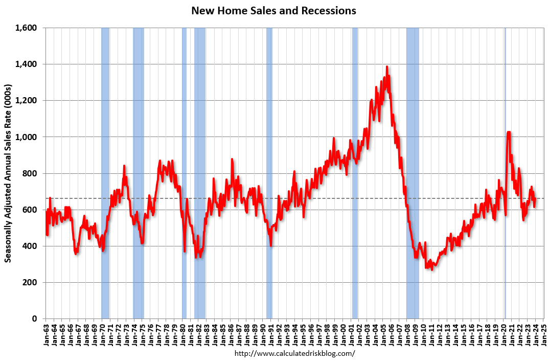 And the Census Bureau reported “Sales of new single‐family houses in December 2023 were at a seasonally adjusted annual rate of 664,000”, up 4.4% YoY from December 2022.