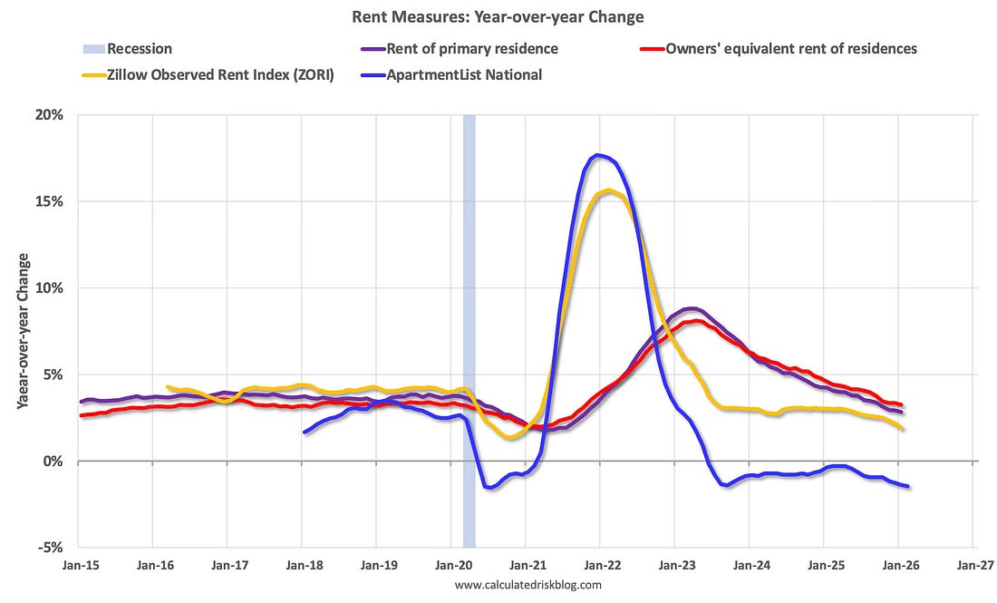 The ApartmentList measure is -1.5% YoY as of February, down from -1.4% in January, and down from a peak of 17.7% YoY December 2021.