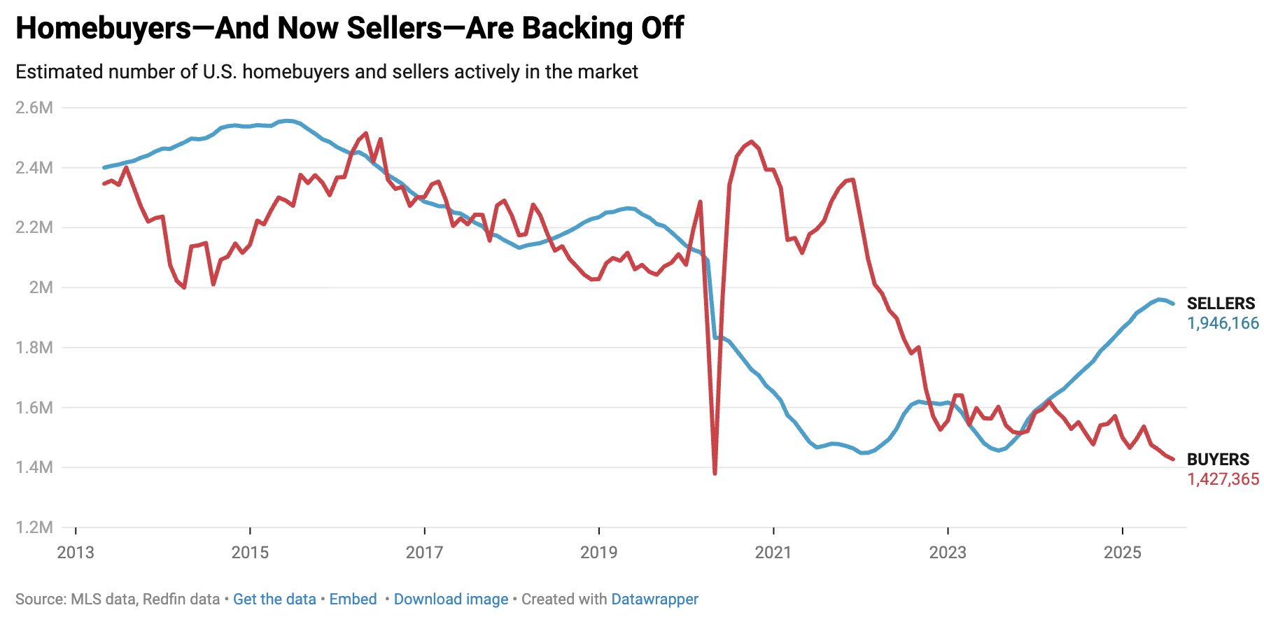 - In July 2025, U.S. homesellers dropped slightly from 1.96 million in May to 1.95 million, per Redfin data.